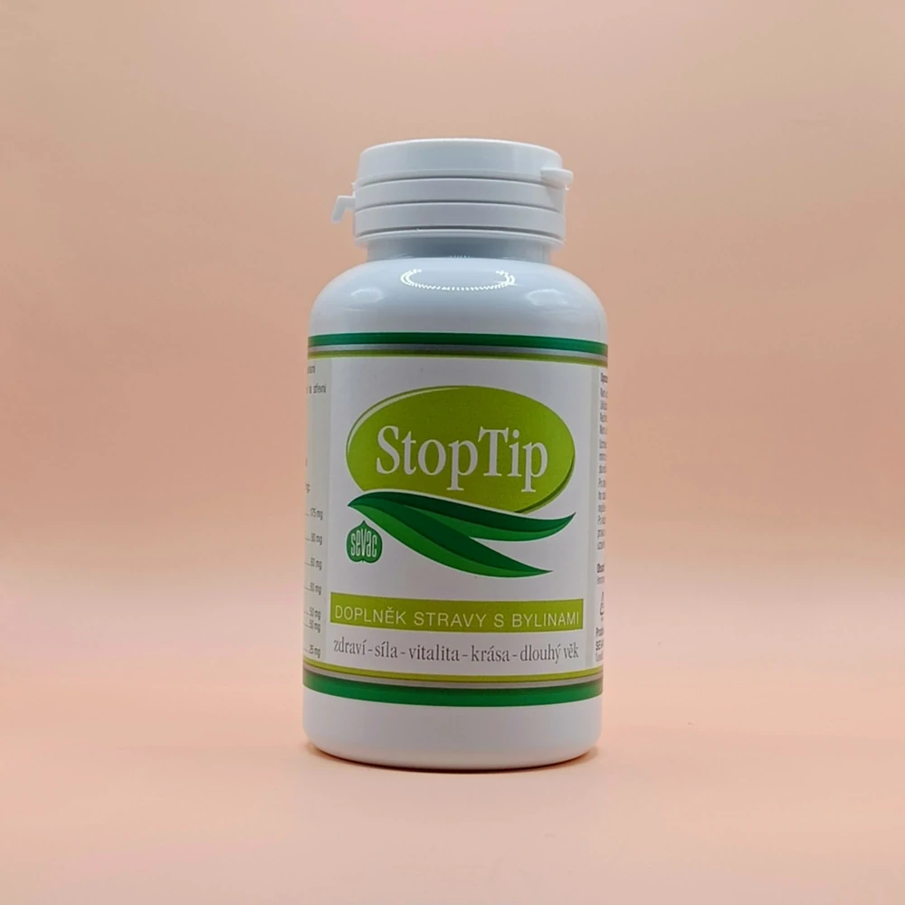 StopTip (80 tablet) Doplněk stravy. Složení: Spirulina - příznivě působí na střevní činnost Řemdihák plstnatý - podporuje přirozenou obranyschopnost Rdesno blešník Šáchor hlíznatý Popenec obecný Mikrokrystalická celulóza Stearan hořečnatý Dávkování: 2x denně 1-2 tablety, zapít celý popis